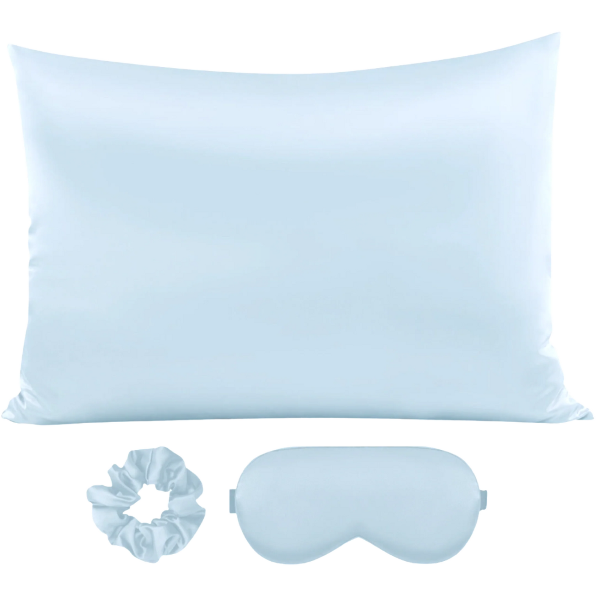 This 3-piece Satin Sleep Set comprises of a standard pillowcase with a zipper closure, a sleep mask with an adjustable strap, and a satin Scrunchie. Makes a great gift!