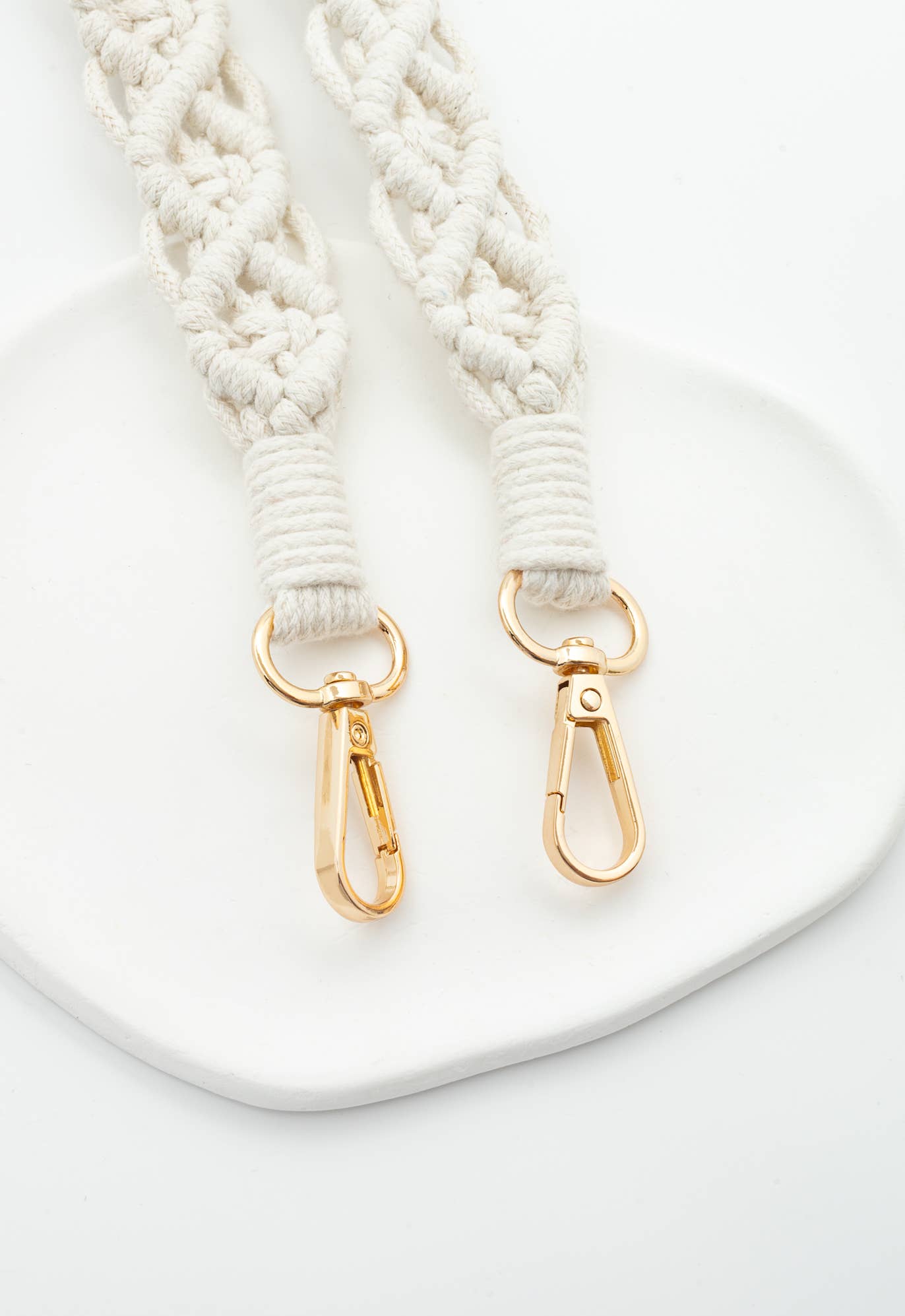 The ultimate hands-free accessory! The Natural Macramé Crossbody Strap seamlessly blends function, style, and impact. Handwoven this beautifully crafted strap transforms your phone or small handbag into a chic, hands-free essential. With its easy clip-on design and included adapter card, this strap is compatible with all full-coverage phone cases. It's the perfect length for texting, taking photos and comfortable wear. Gift it to a loved one (or yourself!) as a meaningful, stylish piece that carries a story of hope. Each handwoven strap represents the first steps a survivor takes toward rebuilding her future—learning, creating, and flourishing in a safe, supportive community. What's in the box? Each set comes with an adapter card and strap.